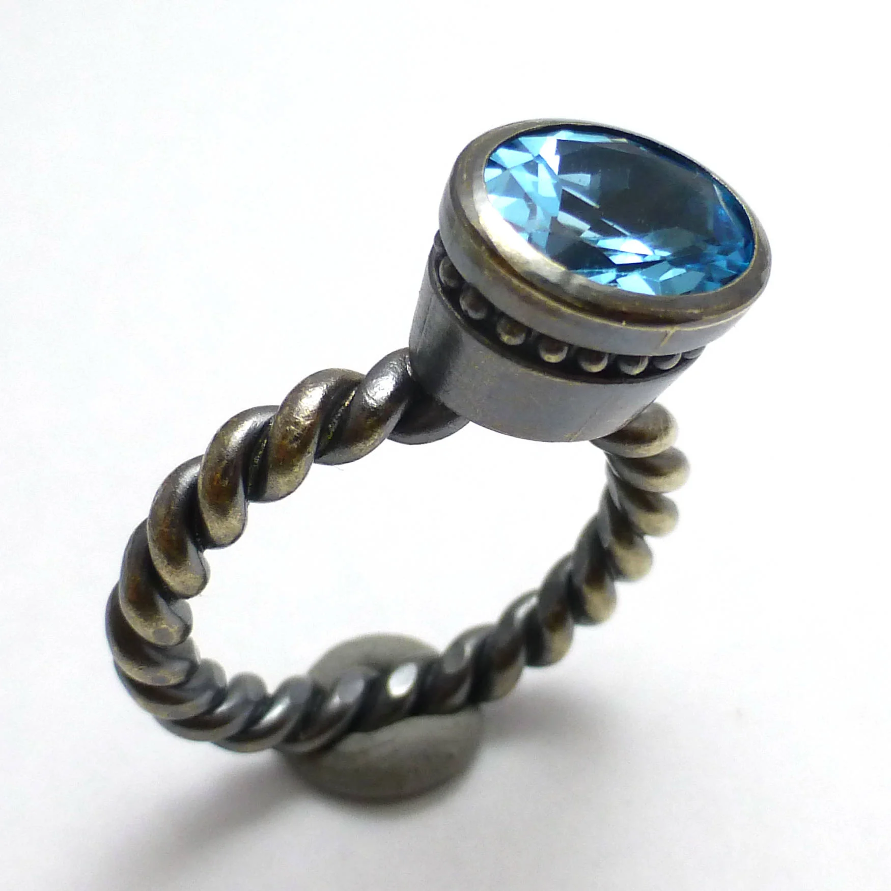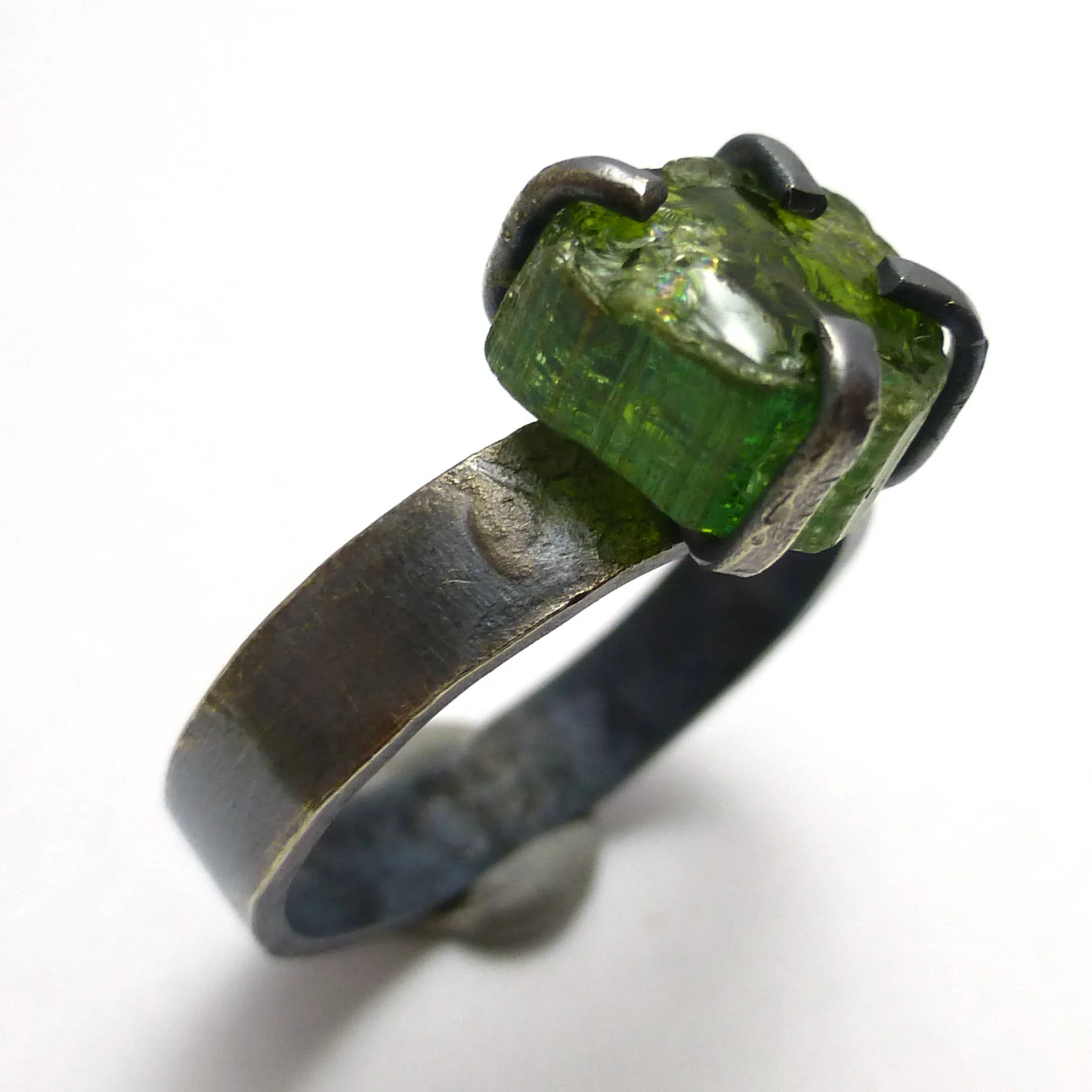 Color Change Zirconia Ring Size 9 Blue Sapphire to Emerald Green with Tourmaline side stones